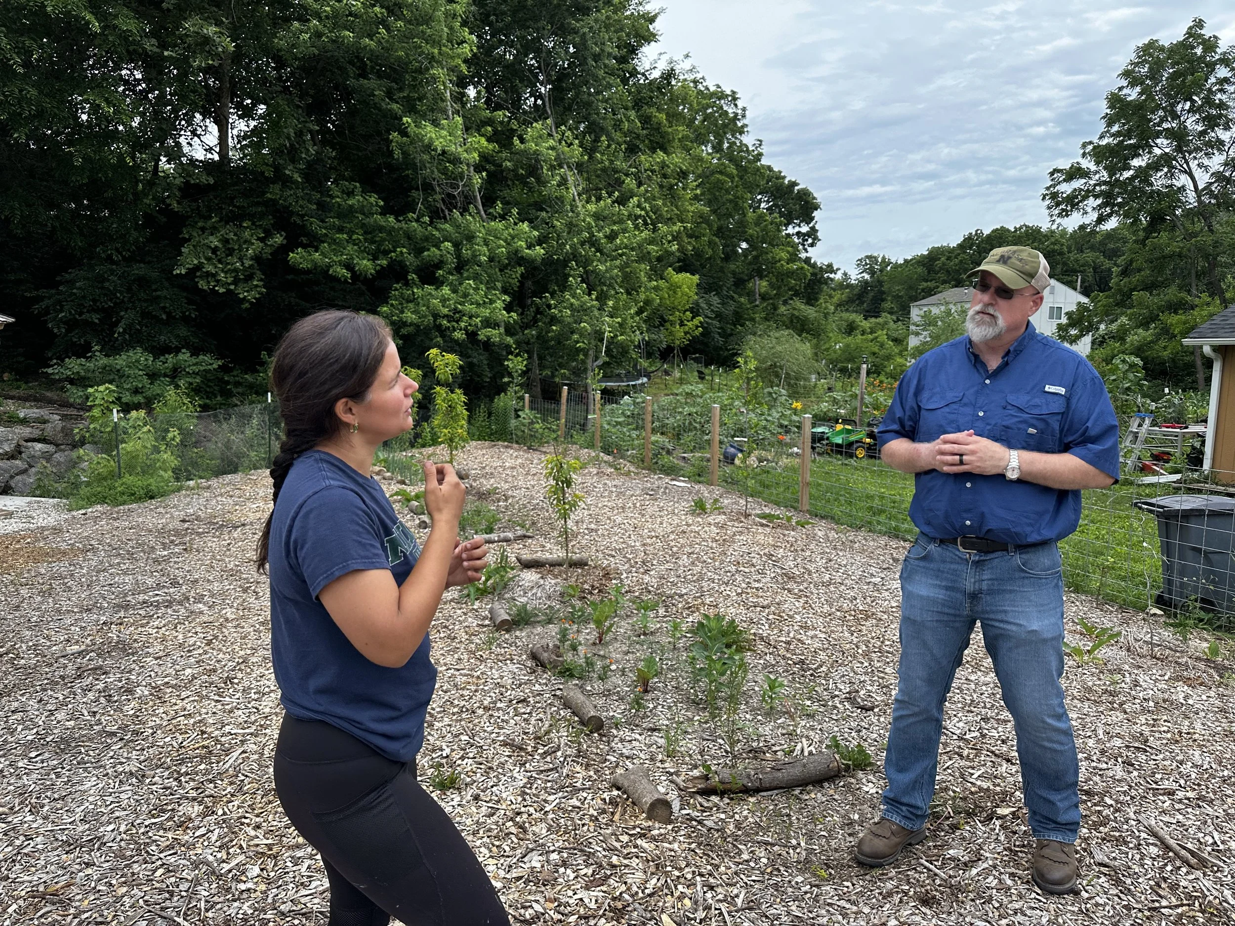 Sandra talking to the State Urban & Non-Traditional Conservationist, Tim Miller, about this future site for an orchard or raised beds.